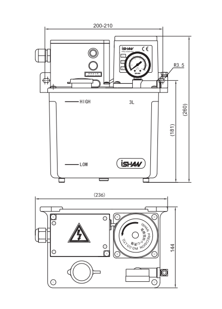 | 單相電壓 (VAC) | 功率 (W) | 異常輸出接點(diǎn)容量 (A) | 潤滑時(shí)間 | 間歇時(shí)間 | 吐出口徑 | 最大吐出壓 (kgf/cm2) | 吐出量 (cc/min) | 壓力開關(guān) (kgf/cm2) | 液位開關(guān) | 油箱容量 (L) | 重量 (kg) | ||||||